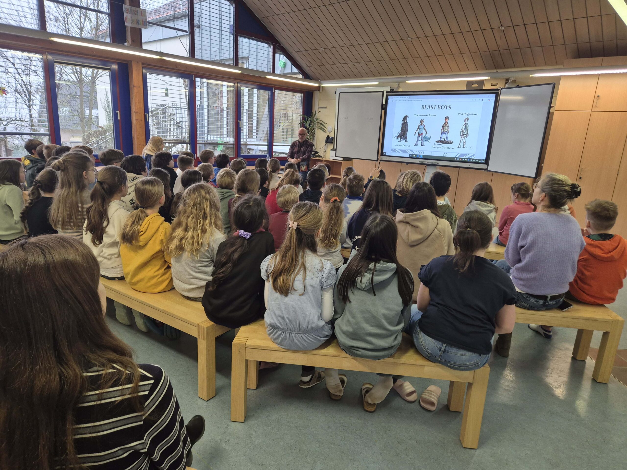 Lesetütenübergabe der Paten (3. Klassen) an die Patenkinder (1. Klassen)