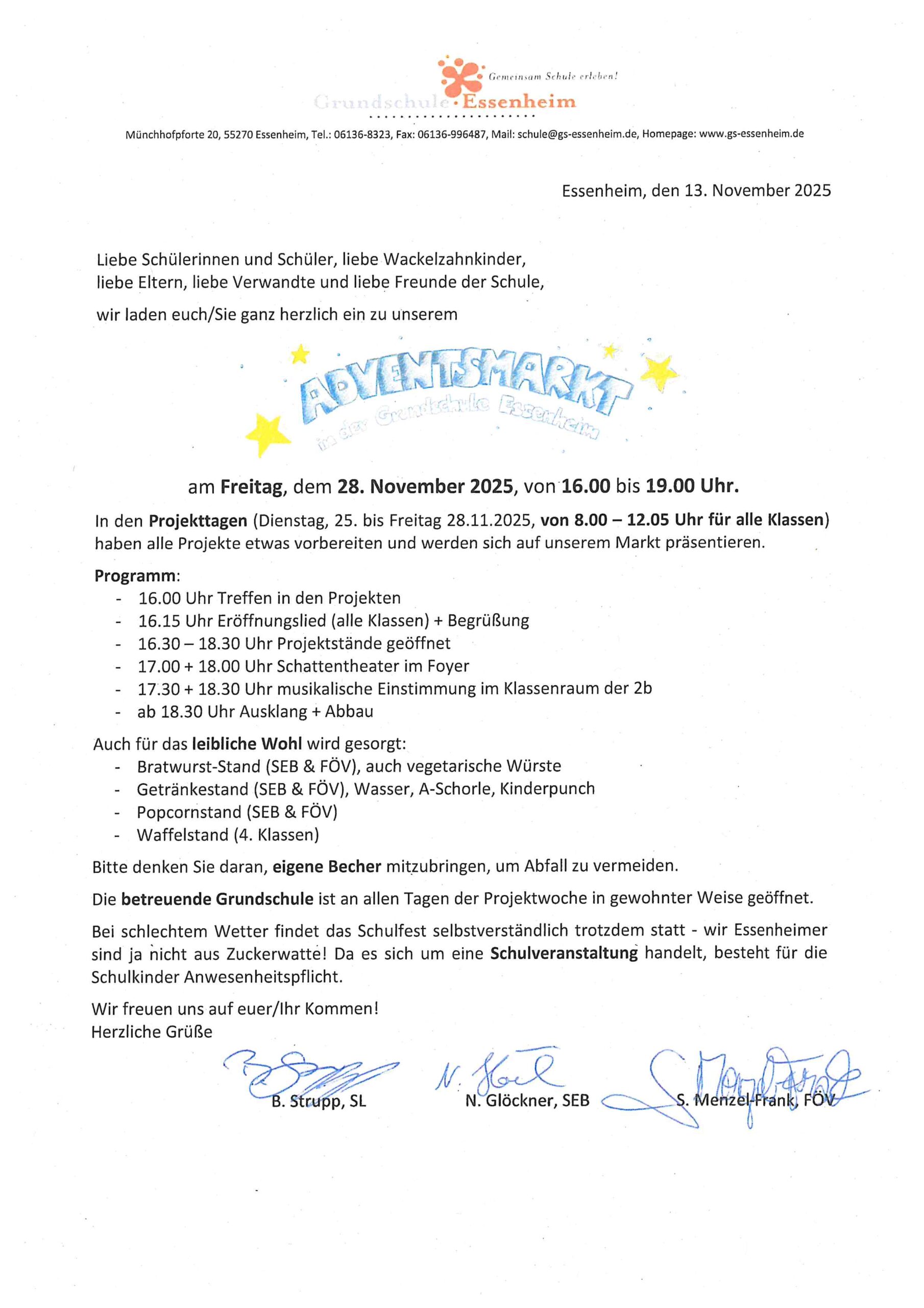 Herzlich danken wir Ihnen, den Eltern, Schülerinnen und Schülern, dem Kollegium für Ihr bisheriges Verständnis, wir wissen um die belastende Situation für die Schulgemeinschaft. Besonders danken wir Herrn Jeschke, der vieles erst möglich macht und immer ein Auge auf „seine Schule“ hat.