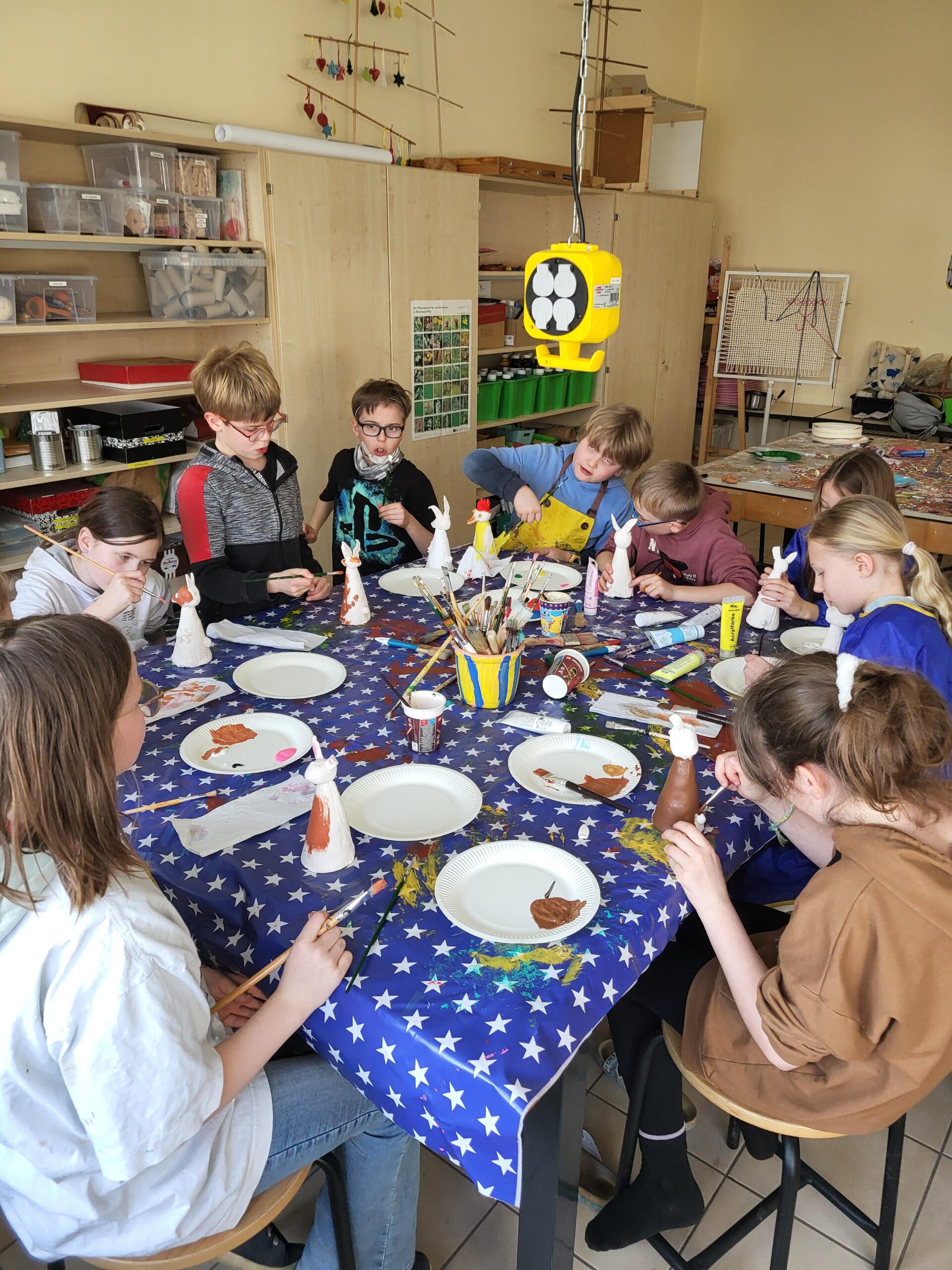 - breites Angebot an AG’s an den Nachmittagen (Pralinen-AG, Yoga-AG, Töpfer-AG, Weinbergs-AG, Feuerwehr-AG, Kerzen-AG, Bienen-AG und noch einige andere)